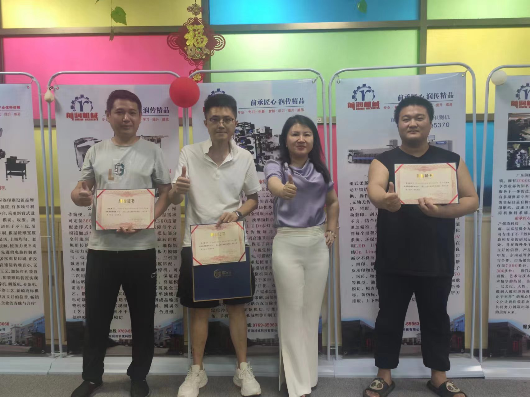 6月1日丁總為結(jié)業(yè)學(xué)員頒發(fā)結(jié)業(yè)證書(shū),并對(duì)企業(yè)文化進(jìn)行宣講,致力于企業(yè)更好的管理,希望大家同心同德,創(chuàng)前沿,潤(rùn)無(wú)聲,用平凡的雙手,創(chuàng)造不凡的業(yè)績(jī)。為了企業(yè)的發(fā)展壯大,自律、自省、自警,了解企業(yè),遵守企業(yè)規(guī)定。廣東前潤(rùn)機(jī)械科技有限公司是坐落于美麗的東莞大嶺山鎮(zhèn)的一家集研發(fā)、生產(chǎn)、銷(xiāo)售、服務(wù)于一體的國(guó)家高新技術(shù)企業(yè)。前承匠心,潤(rùn)傳精品,為客戶省人提效,工藝創(chuàng)新,是企業(yè)一直沿用的核心價(jià)值觀,創(chuàng)前沿,潤(rùn)無(wú)聲,用前沿科技,為客戶創(chuàng)造利潤(rùn)是企業(yè)堅(jiān)持不變的理念。前潤(rùn)機(jī)械永遠(yuǎn)在前進(jìn)的路上,不斷的與時(shí)俱進(jìn),促進(jìn)公司的可持續(xù)性發(fā)展。努力打造成為標(biāo)簽印刷設(shè)備行業(yè)技術(shù)風(fēng)向標(biāo),爭(zhēng)取標(biāo)簽印刷行業(yè)世界地位;成為智能制造非標(biāo)定制供應(yīng)商,爭(zhēng)取人工智能行業(yè)。