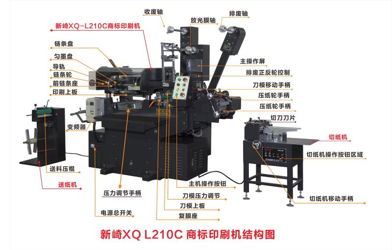 1,商標機。它集印刷、模切、排廢、覆膜、裁切于一體完成,但印刷幅面不大,200mm左右,色數最多4色。