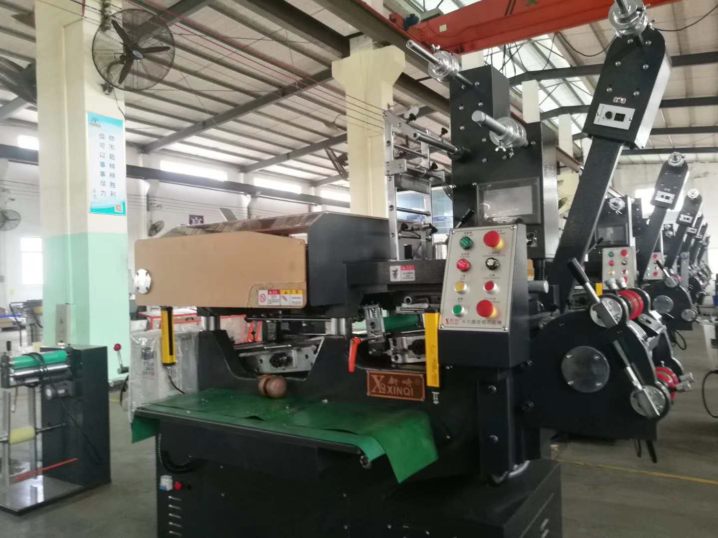 4、圓壓平-間歇式輸紙類型標簽印刷機 優點是:印刷品試印范圍廣,即可印刷網點也可印刷線條文字,適合大面積實地印刷。 缺點是:速度慢,由于傳動的關系,套印精度低,所以不適合高檔次的標簽印刷。